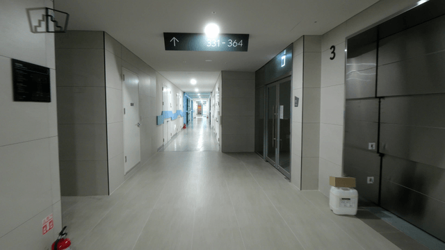 Quiet Corridor with Door and Drying Rack