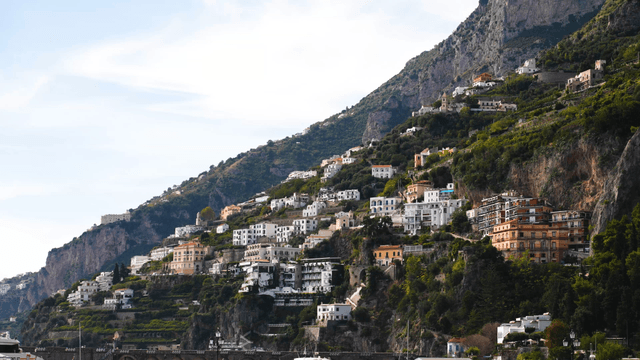 Majestic red horse standing on two legs on rocky cliff at sunset