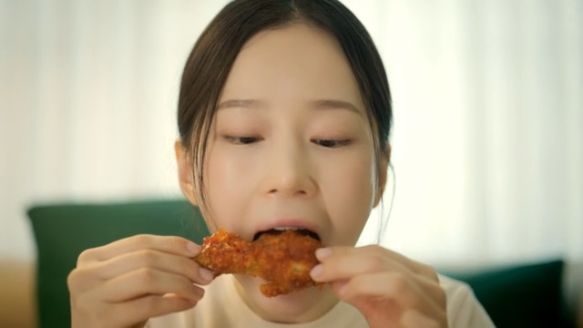 Woman enjoying fried chicken