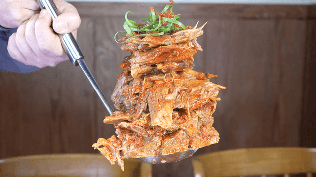 Tender outer leaves pork back-bone stew torn with tongs