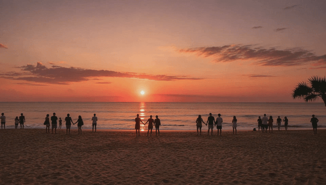 People Walking on the Beach Under a Beautiful Sky at sunset