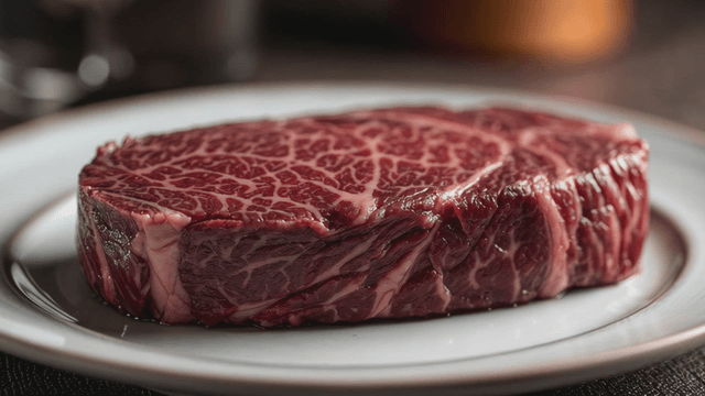 Marbled beef on a white plate