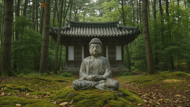 Serene Buddhist Temple Featuring Statues and Pagodas