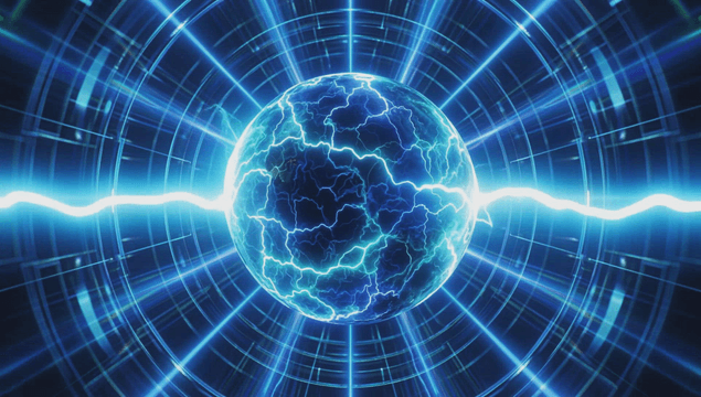 Glowing sphere with digital patterns