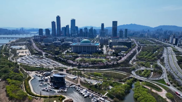 Spring Day in Yeouido with Cherry Blossoms in Full Bloom
