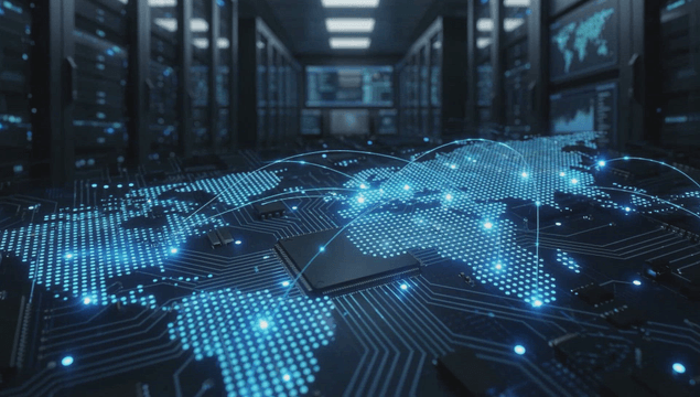 Data center with digital world map