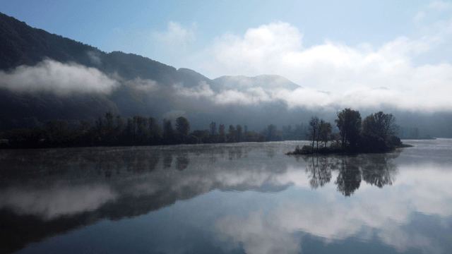 Lake where fog and greenery harmonize
