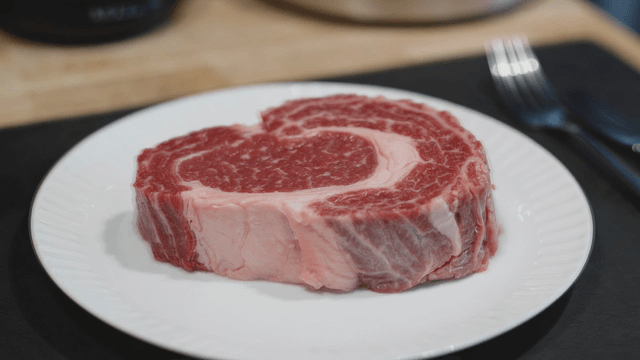 Marbled steak on white plate