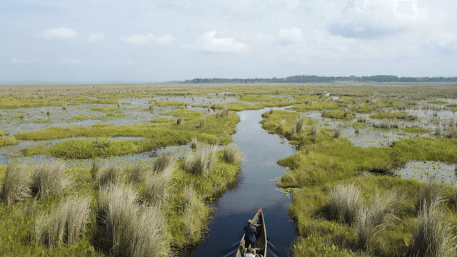 Expansive wetlands with green vegetation