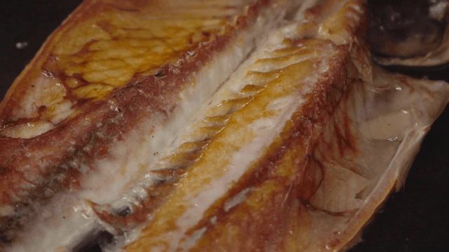 Fish being cooked in a pan on a stove
