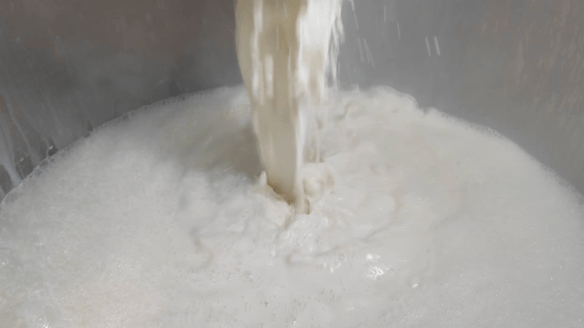 Soy milk falling into large container