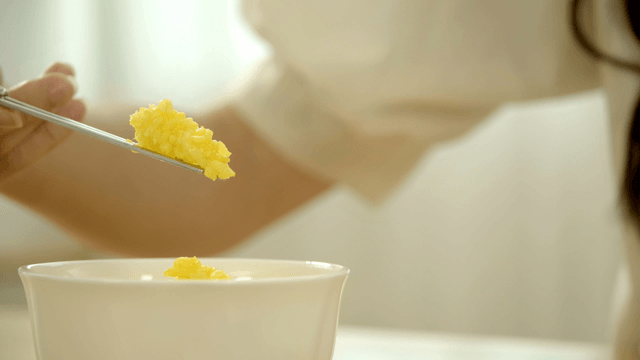 Person enjoying a meal with kimchi and riceoutdoors with a serene background