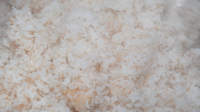 Mixing rice with various ingredients