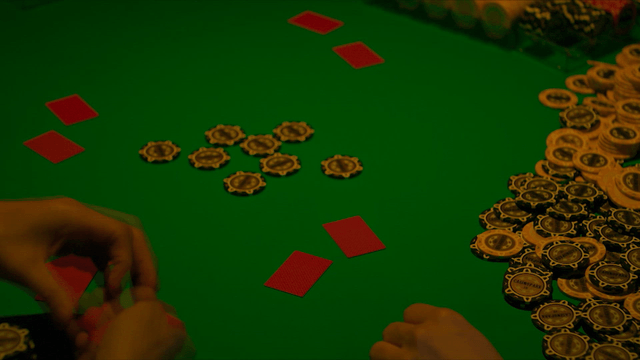 Poker chips and cards on a casino table