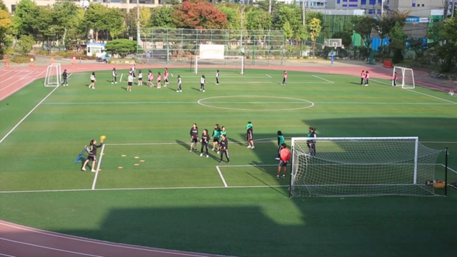 Colorful elementary school buildings and playground under a sunny sky with drifting clouds
