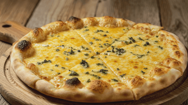 Freshly baked cheese Quattro Formaggi pizza