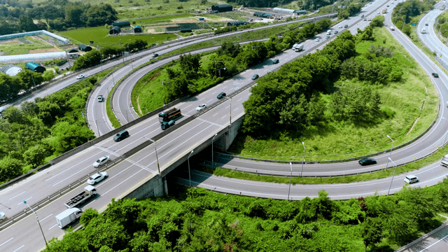 Busy highway surrounded by greenery