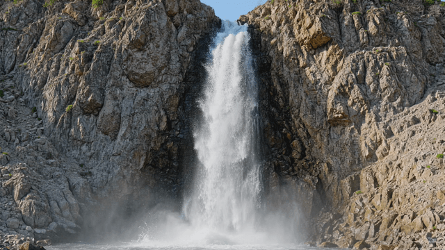 Aerial view of a cascading Barron Falls on a rocky cliff