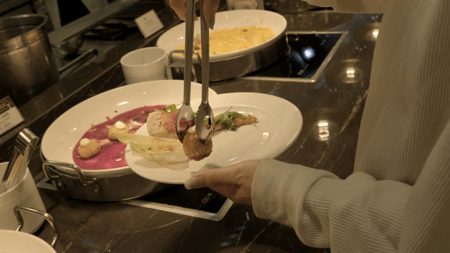 Variety of foods such as salads, vegetables, and meats displayed on a buffet