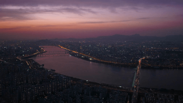 Panoramic view of the Han River and Seoul from daytime to night