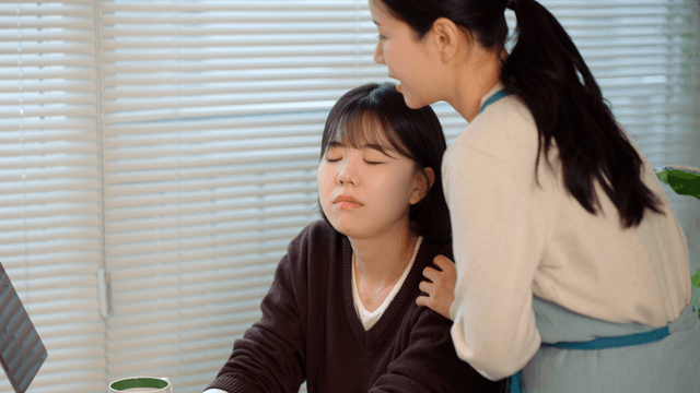 Mother looking at her daughter using her smartphone with pitiful expression.
