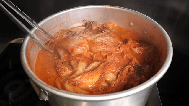 Kimchi stew filling pot