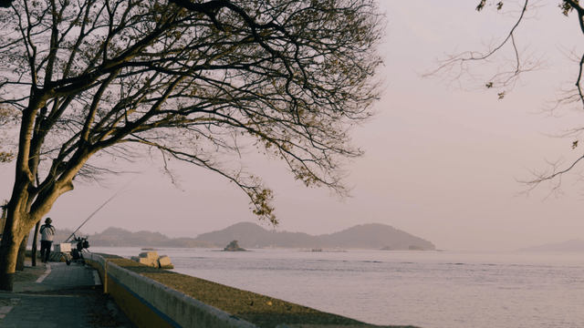 People Fishing on the Coast of Suncheon Sea at Sunset