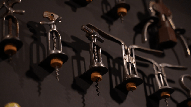 Rainbow-colored chairs displayed on top of a mountain with wind turbines in view