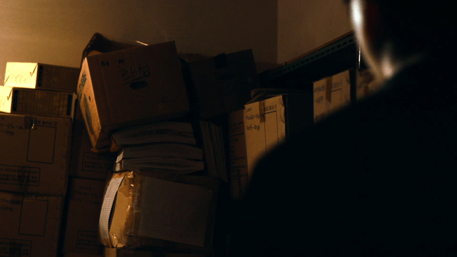 Dark case file room with boxes