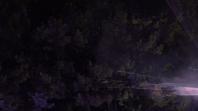 Rain in the dark night forest