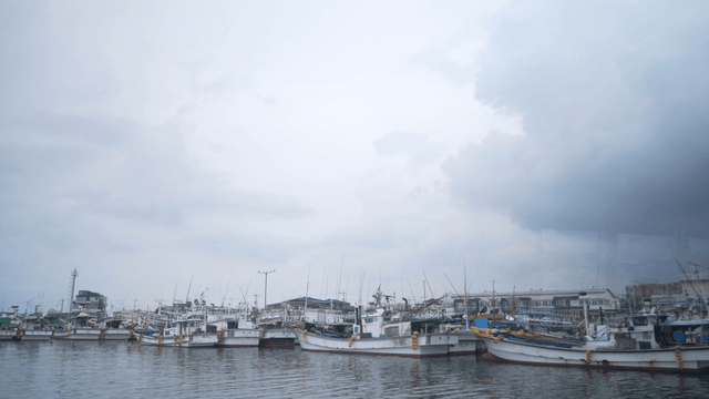 Docked fishing boats in a serene seaside harbor