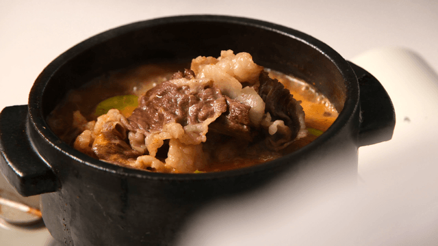 Soy Bean Paste Stew in Earthen Pot Placed on a Wooden Table