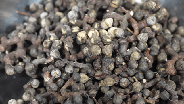 Bowl containing yellow sacred mushrooms and hackberry fruits