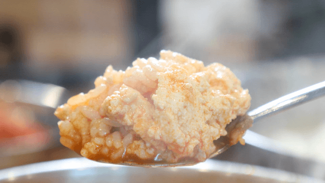 Jjamppong soft tofu mixed with rice and eaten with spoon