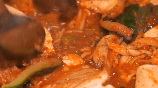 Spicy pork stew with plenty of vegetables, tofu, and meat