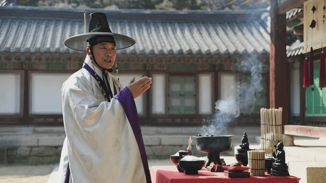 Elderly person preparing an outdoor traditional ritual with rice wine