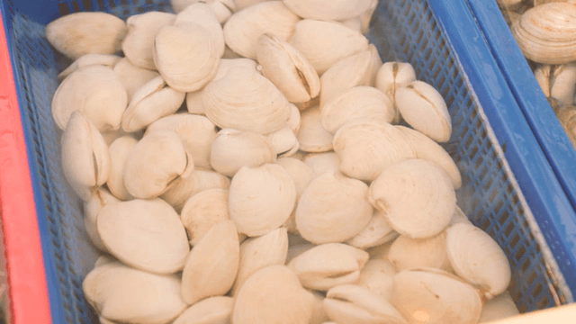 Clams in a water tank at a market