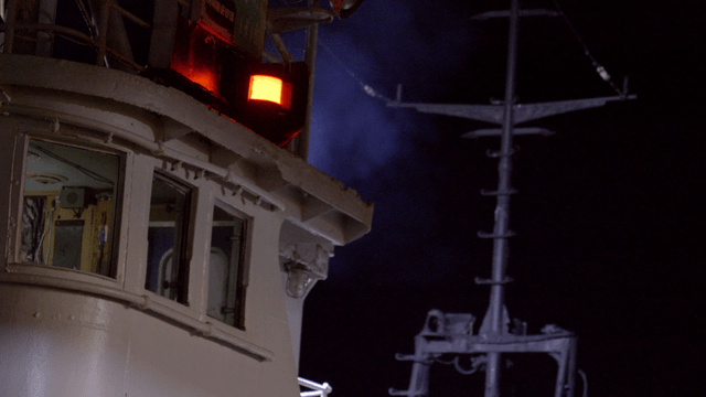 Illuminated Ulsan Bridge over a bustling harbor at night