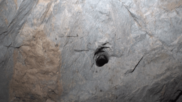Inside a rocky cave with a small hole