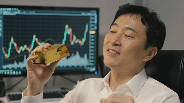 Man holding Korean banknotes with a smile