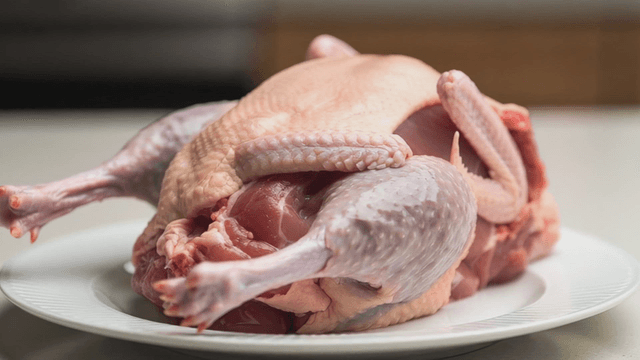 Raw duck placed on a white plate