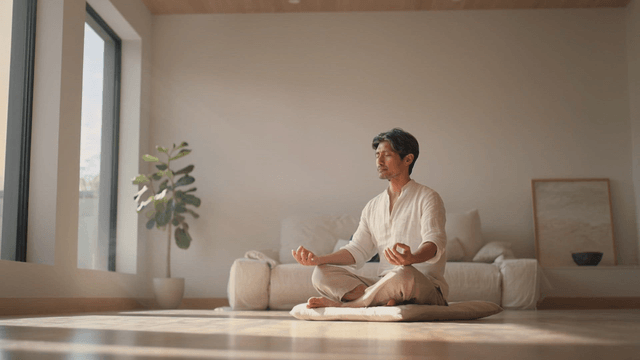 Man meditating in a sunlit room
