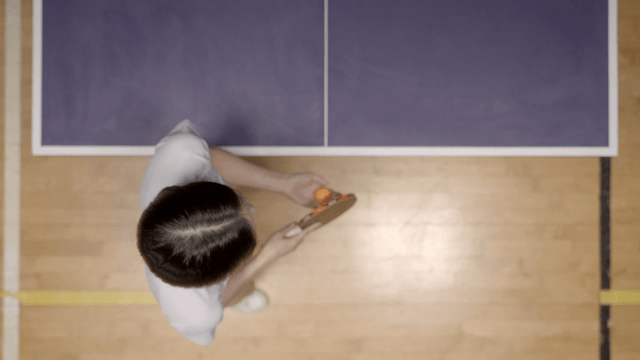 Person preparing table tennis serve