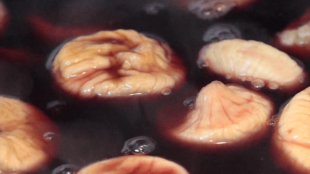 Mulled wine being poured over dried figs