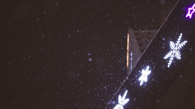 Christmas lights on snowy night