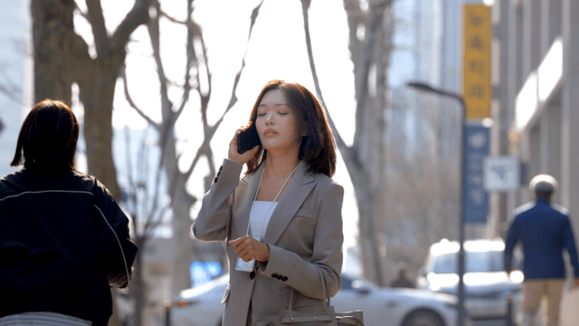 Working woman walking on city street