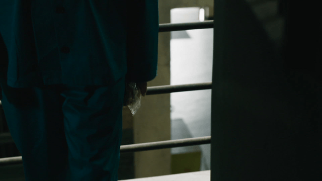 Prisoner coming down dark staircase