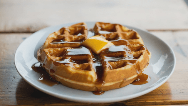 Sweet potato soufflé pancakes with syrup and sugar powder