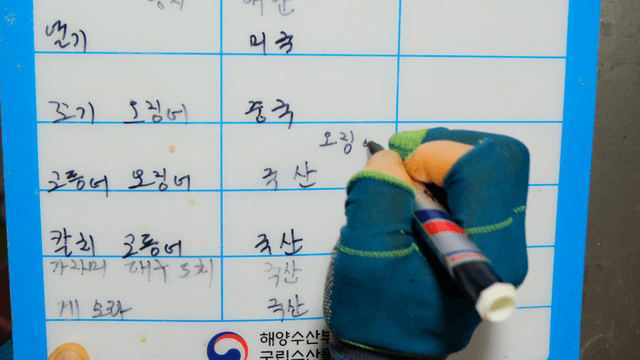 Merchant at the Fish Market Introducing Fresh Seafood