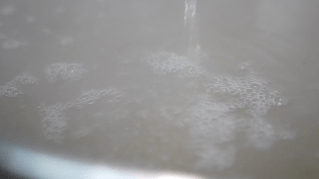 A pot of boiling liquid with foam